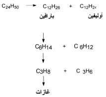 وبتعرض جزيئات البارافينات إلى الحرارة العالية والضغط يتم تكسير الجزيء إلى بارافين وأوليفين.