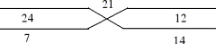 - تجد الفضل بينهما {أي بين 7 و 21} أربعة عشر ضعها تحت الكفة الأولى.