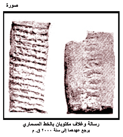 رسالة وغلاف مكتوبان بالخط المسماري يرجع عهدهما إلى سنة 2000 ق . م