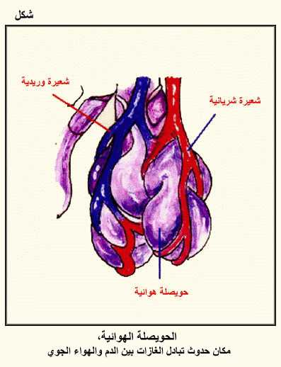 الحويصلة الهوائية، مكان حدوث تبادل الغازات بين الدم والهواء الجوي