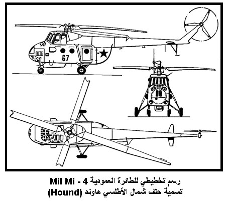 رسم تخطيطي للطائرة العمودية Mil Mi-4، تسمية حلف شمال الأطلسي هاوند (Hound)