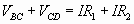 وعلى المنوال نفسه، يكون فرق الجهد الكهربي بين النقطتين C وD هو: