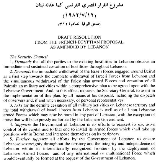 مشروع القرار المصري ـ الفرنسي المعدل بناءً على طلب لبنان،