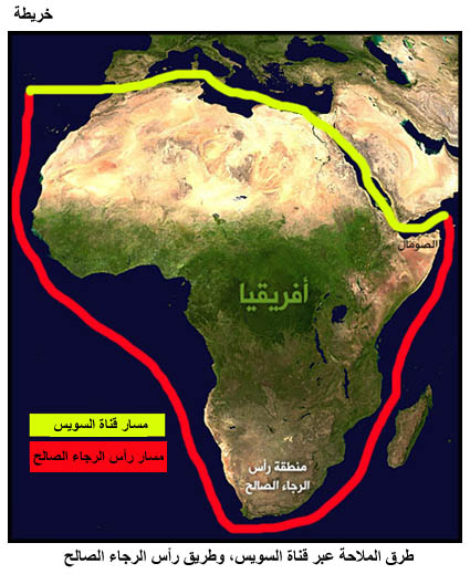 طرق الملاحة عبر قناة السويس وطريق رأس الرجاء الصالح