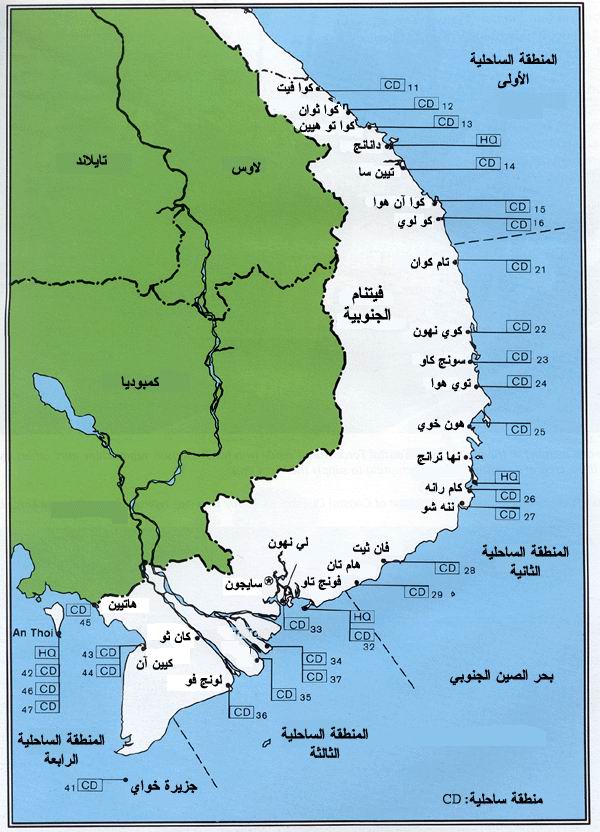 مواقع توزيعات وحدات ضفادع بشرية أمريكية؛ للمساندة التكتيكية، في سواحل فيتنام الجنوبية، في يناير 1965