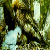 صقر يقف على يد صقَّار، وعيناه مغطيتان بالبرقع