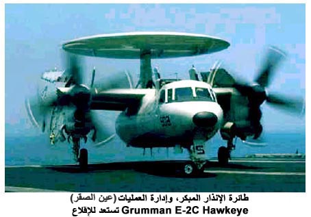 طائرة الإنذار المبكر، وإدارة العمليات الجوية (عين الصقر) Grumman E-2C Hawkeye تستعد للإقلاع