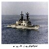 منظر جانبي للمدمرة كيريشيما (174) من الفئة كونجو، يرتفع عليها علم اليابان