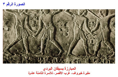 المبارزة بسيقان البردي (مقبرة خيرواف، غرب الأقصر، للأسرة الثامنة عشرة)