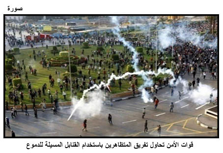 قوات الأمن تحاول تفريق المتظاهرين باستخدام القنابل المسيلة للدموع