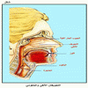 منظر أمامي للحنجرة والقصبة الهوائية، موضحاً الدعامات الغضروفية
