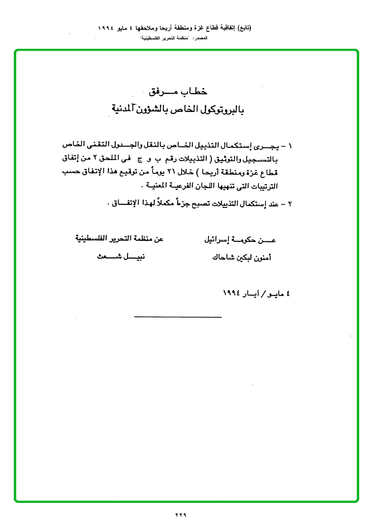 | Home Page / الوثائق / اتفاقيات السلام العربية - الإسرائيلية / فلسطين - إسرائيل / images | |||
